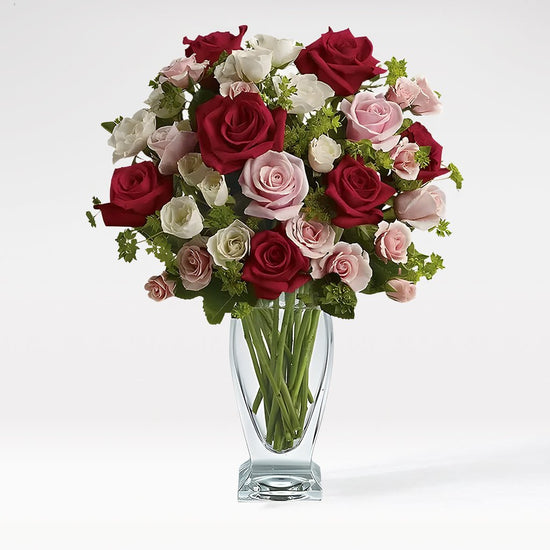 Buket meja Garden Romance hadir dengan mengkombinasikan dua jenis mawar yang cantik dan elegan. Mawar merah dipilih jadi simbol cinta dan keberanian, sementara mawar merah muda melambangkan kasih sayang dan kelembutan.